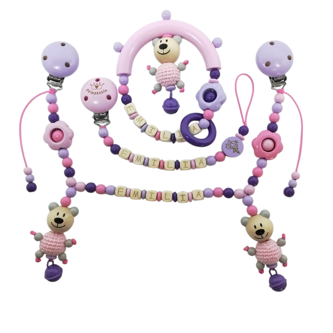 Geschenkbox Greifling + Schnullerkette + Kinderwagenkette *Emilia*