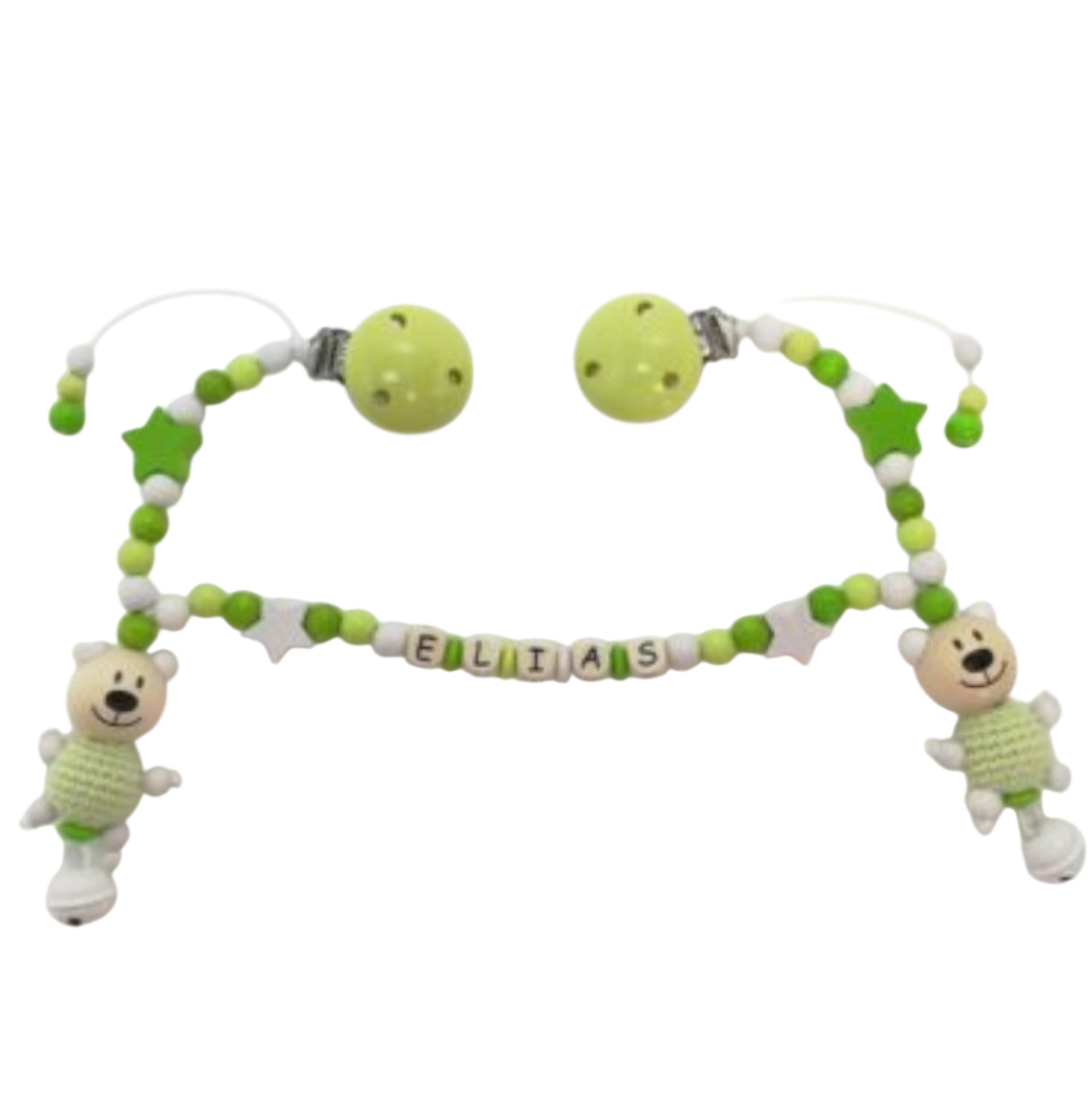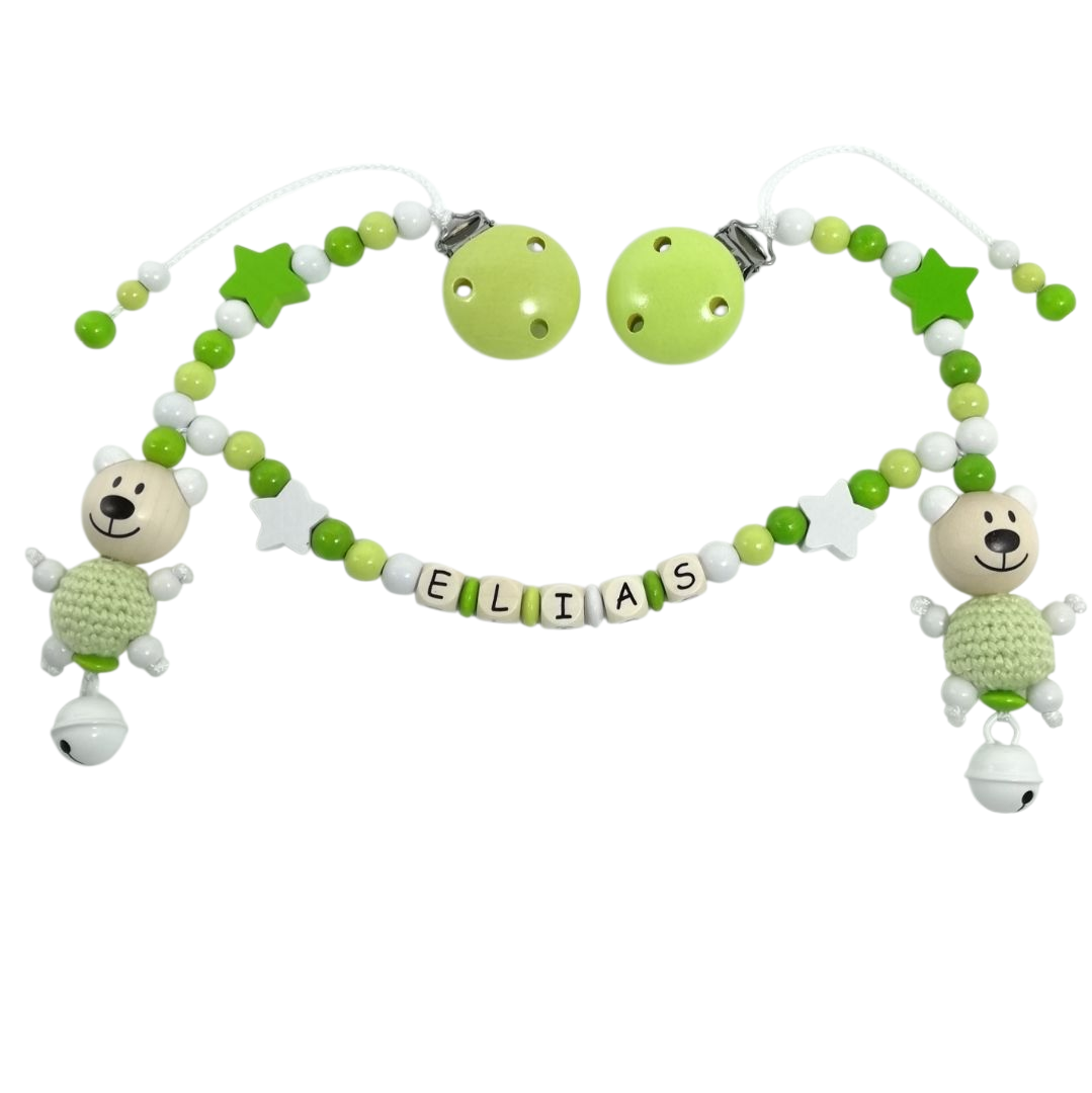 Liebevoll gefertigte Kinderwagenkette mit Häkelbär „Achtung! Um mögliche Verletzungen durch Verheddern zu verhindern, ist dieses Spielzeug zu entfernen, wenn das Kind beginnt, auf allen vieren zu krabbeln.“