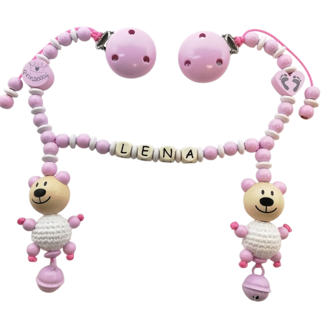 Liebevoll gefertigte Kinderwagenkette mit Häkelbär und Glöckchen „Achtung! Um mögliche Verletzungen durch Verheddern zu verhindern, ist dieses Spielzeug zu entfernen, wenn das Kind beginnt, auf allen vieren zu krabbeln.“