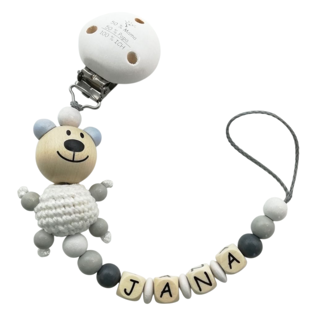 Je nach Länge des Namen, kann sich die Schnullerkette vom Produktbild unterscheiden.