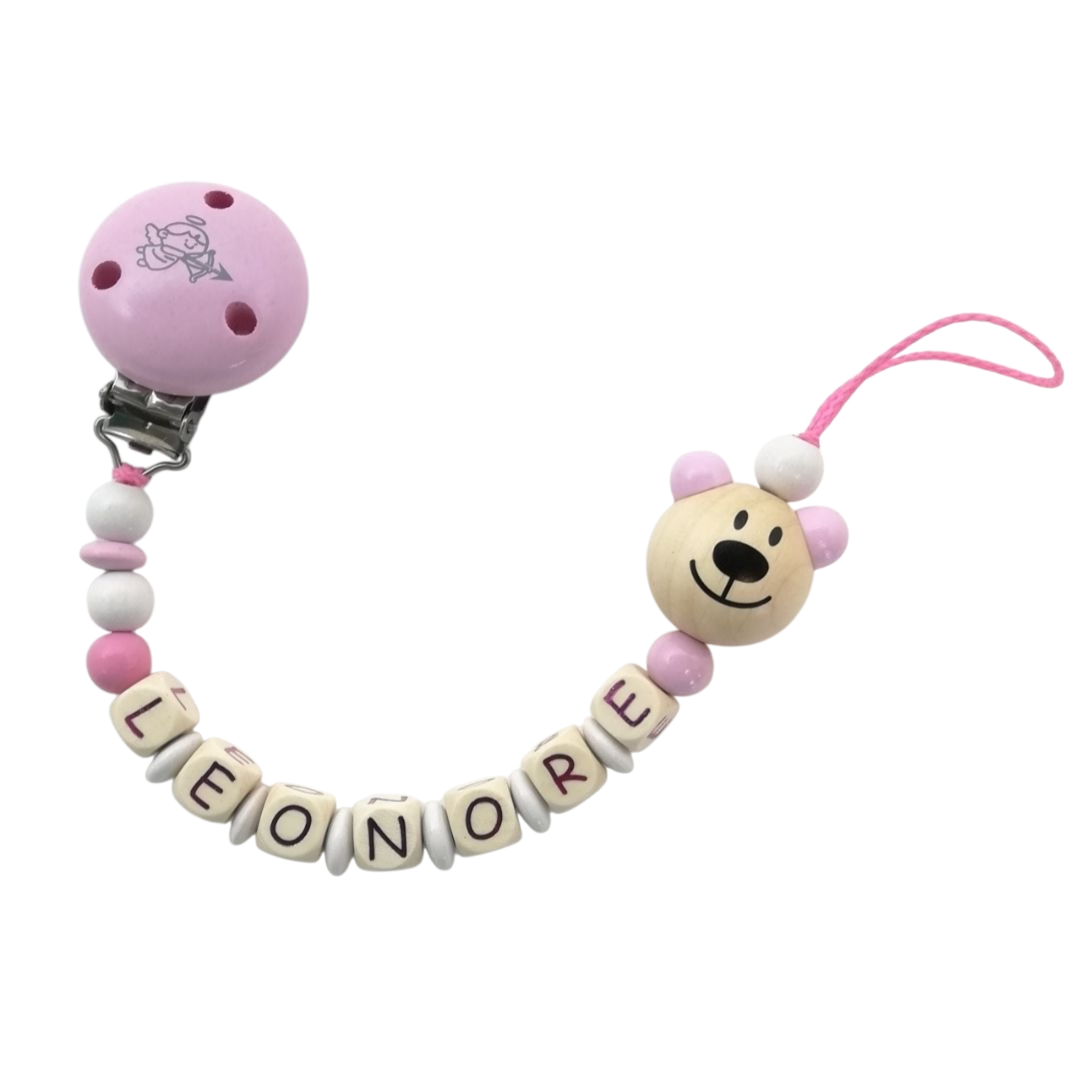 Je nach Länge des Namens kann die Schnullerkette vom Beispielbild abweichen.