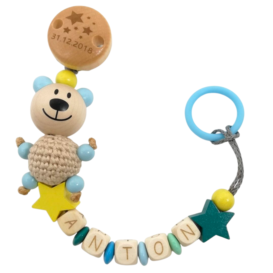 Hier habt ihr die Möglichkeit euch eine Schnullerkette mit den Geburtsdaten herstellen zu lassen. Mittels hochwertiger Lasergravur werden die Daten dauerhaft eingebrannt, daher gibt es bei diesem Verfahren kein Ablösen der Schrift und verspricht somit eine lebenslange Haltbarkeit. Je nach Länge des Namens, kann sich die Schnullerkette vom Produktbild unterscheiden.