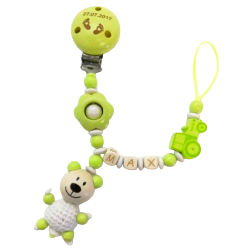 Hier habt ihr die Möglichkeit euch eine Schnullerkette mit den Geburtsdaten herstellen zu lassen. Mittels hochwertiger Lasergravur werden die Daten dauerhaft eingebrannt, daher gibt es bei diesem Verfahren kein Ablösen der Schrift und verspricht somit eine lebenslange Haltbarkeit.