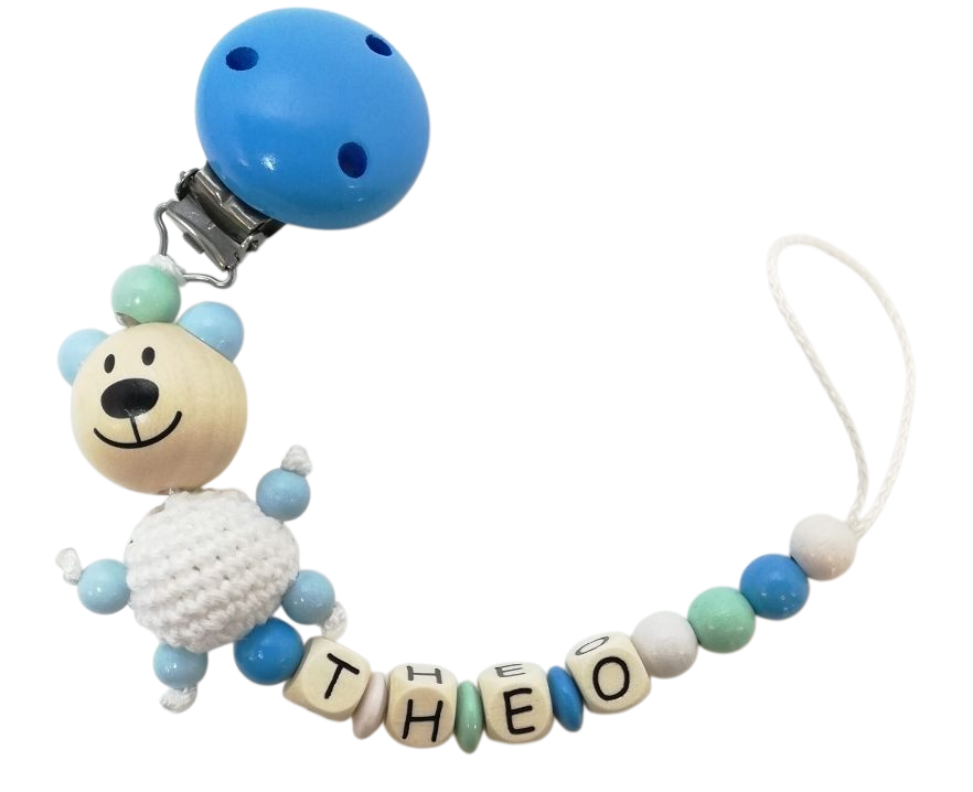 Je nach Länge des Namens, kann die Schnullerkette vom Beispielbild abweichen.